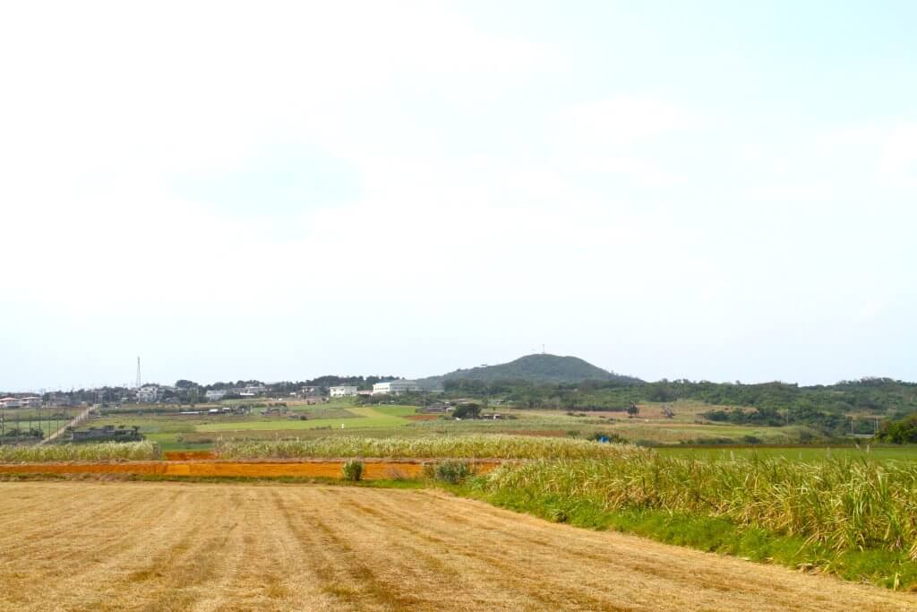 大岳の山頂から見渡すと黄金色の稲穂が広がっていたという光景は、時代とともにすっかり様変わりしてしまったようですが、さとうきび畑や牧草地の青々とした緑と赤土が織りなすパッチワーク、どこまでも青い海、島の美しいのどかな風景は見るひとのこころを和やかにしてくれます。