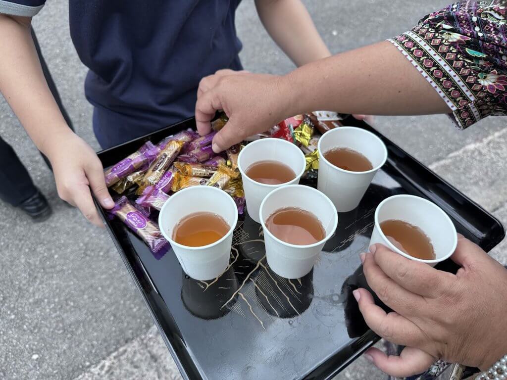 私たちのところにも廻ってきてくれ、よく冷えたお茶をいただきました。