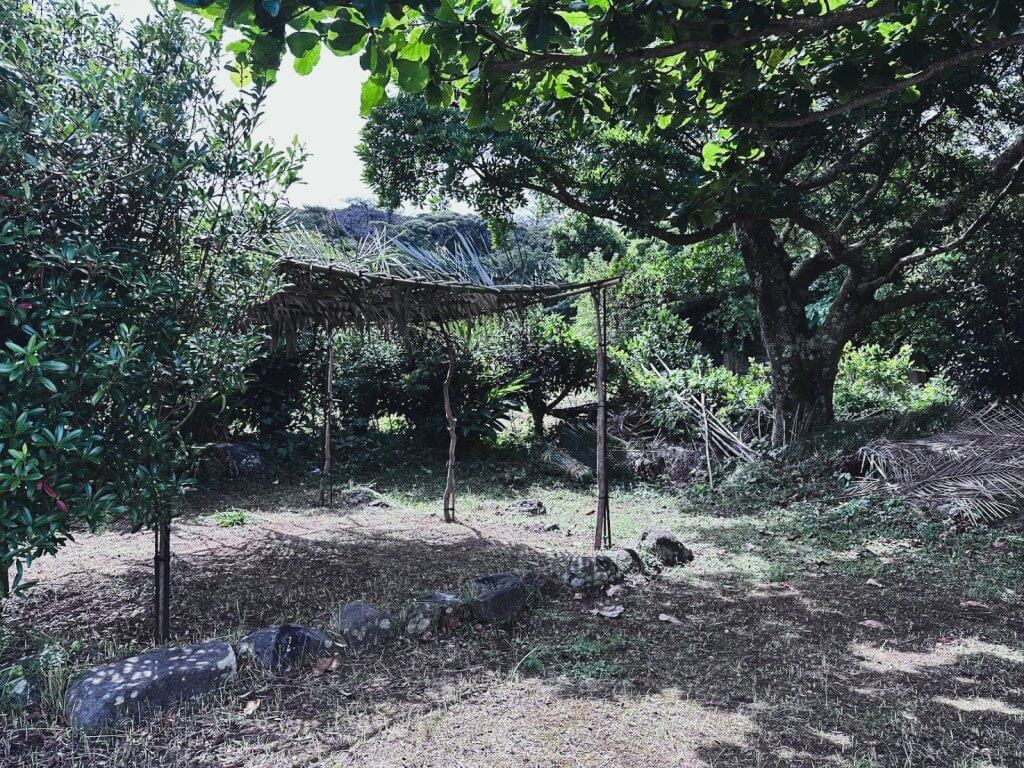 「男性たちがマーニを採ってきて屋根を作ってくれています」