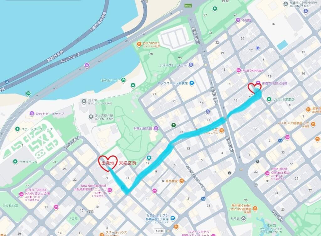 出発地:波の上通り沿いの「天妃宮」前(那覇市若狭一丁目25-1)