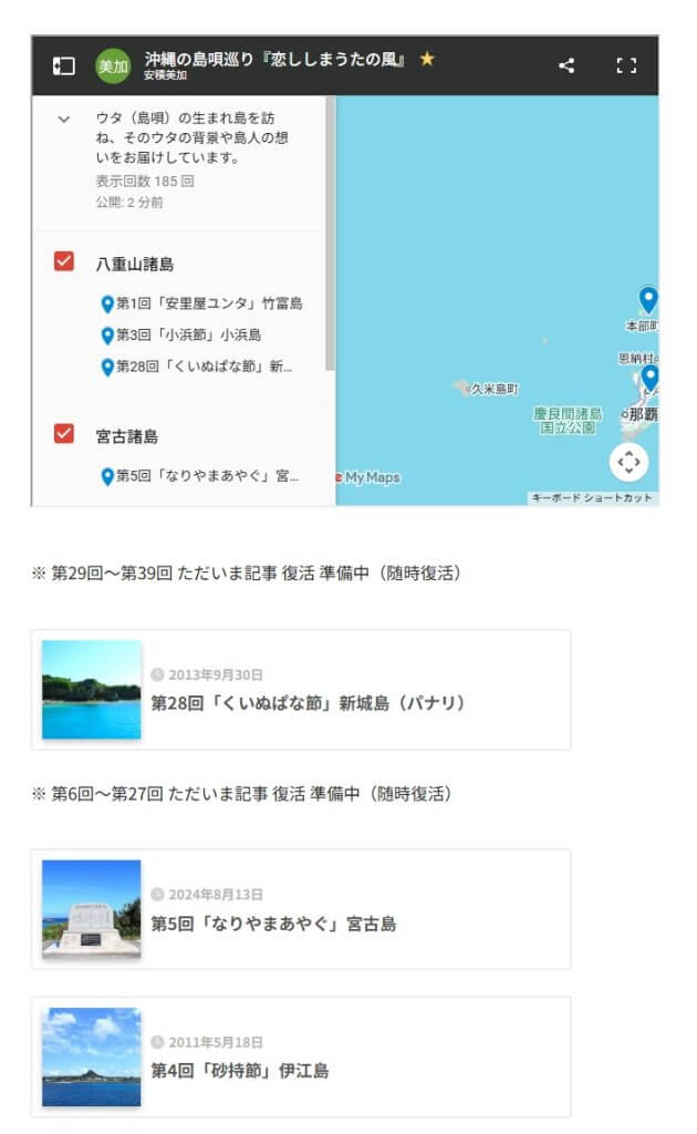 幻の島唄連載の記事を復活中 + 地図からも検索可能に