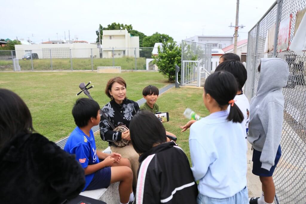 【take1】のなかで、唄者・金城弘美さんが、子どもたちに解説する「くがにふぁー」。