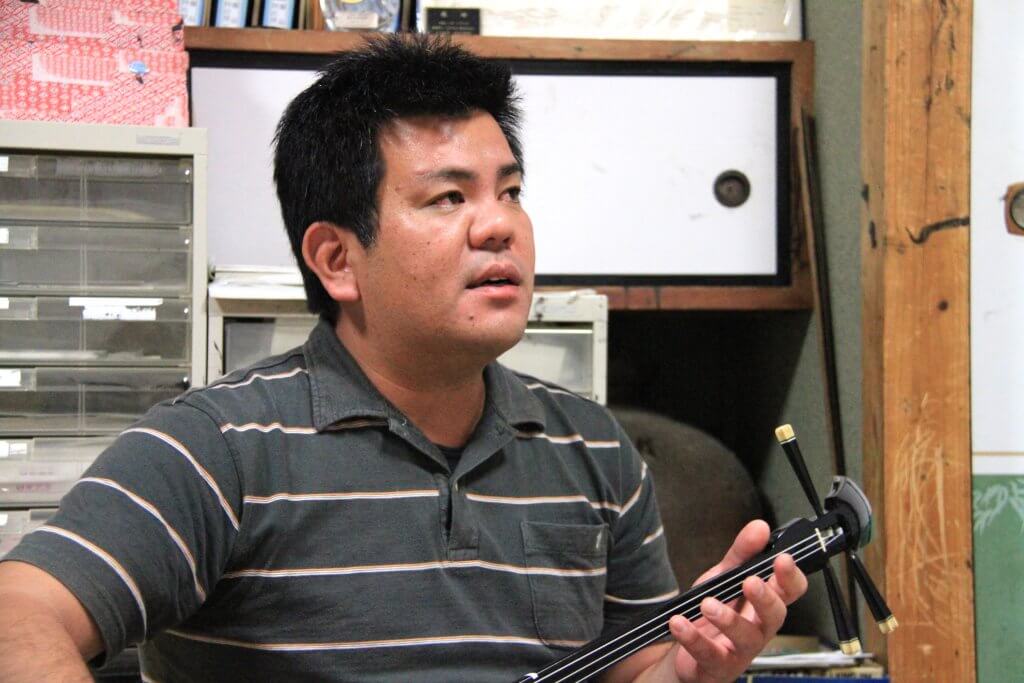 「いつかは『なりやまあやぐ大会』のような、『むんじゅる節』の大会を開きたいと思っています」と、島の代表歌を競い唄う大会の開催を願う伊良皆賢哲さん。