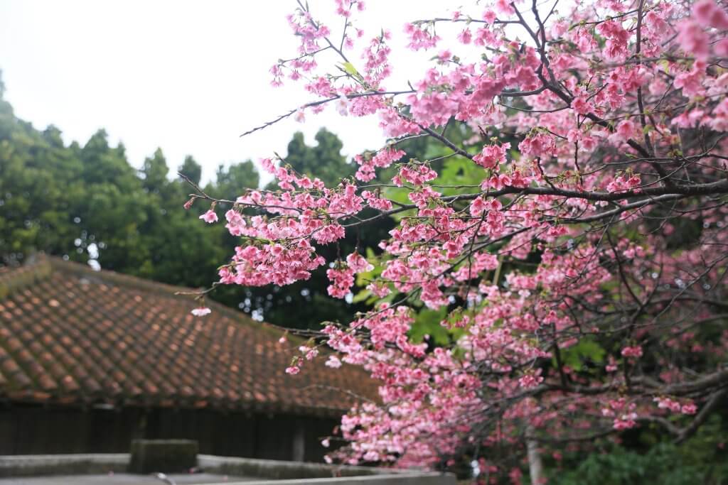 鈍色の空に小雨でしたが、沖縄の濃いピンクの桜(緋寒桜・寒緋桜)は沖縄の赤瓦とよく似合うな、と改めて思いました。
